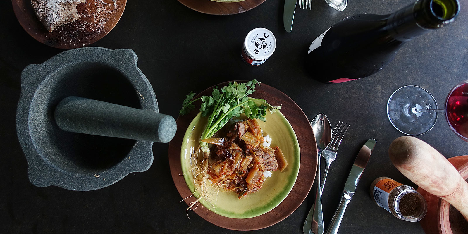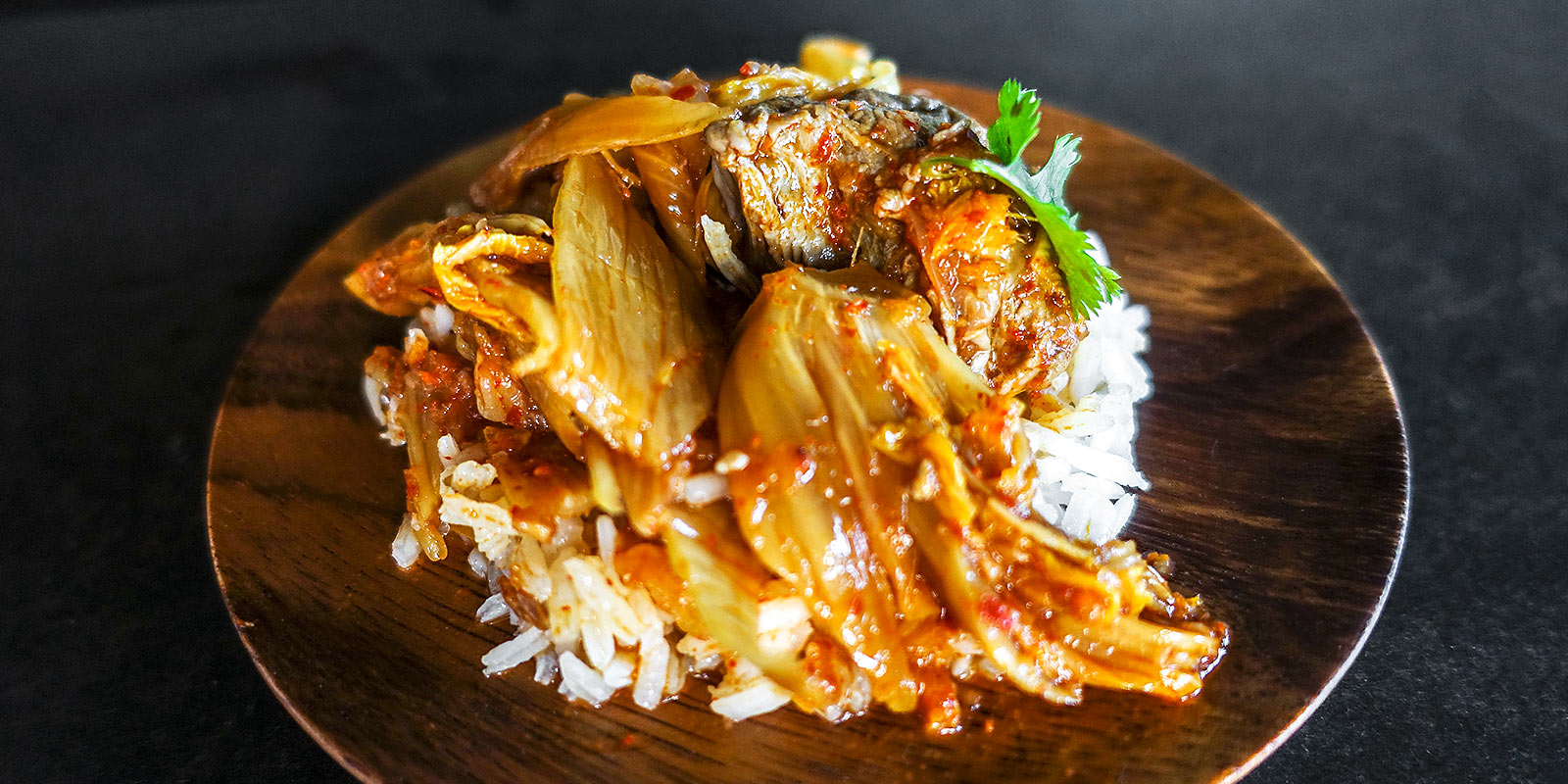 Schweinskopfbacken mit Kimchi geschmort